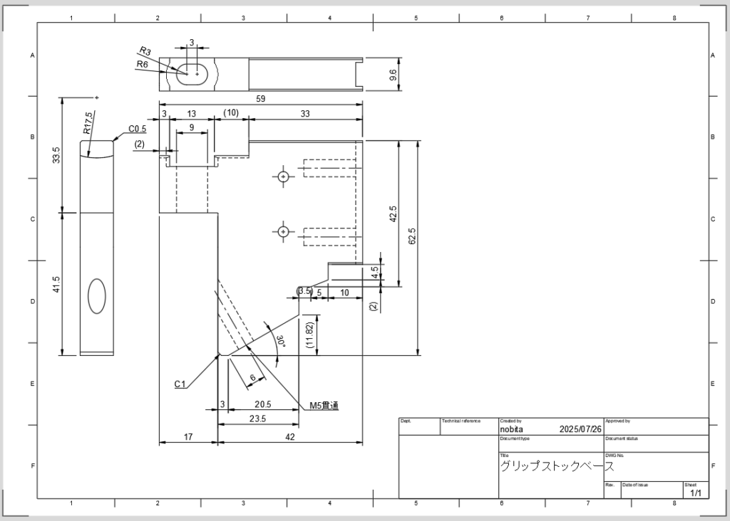 寸法の入っていない穴などは、のびたライフル用なので必要ありません。