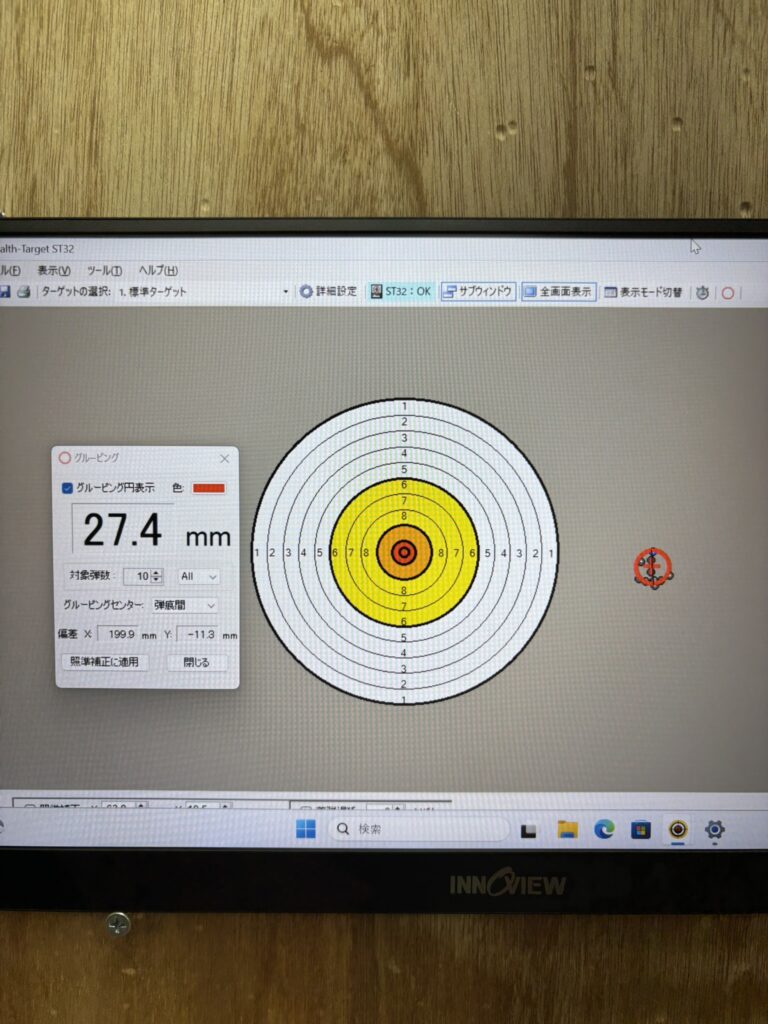 10発のベストグルーピングは27.4mmでした。