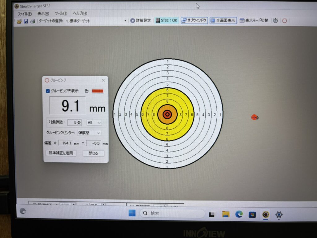 5発のベストグルーピングは9.1mmでした!