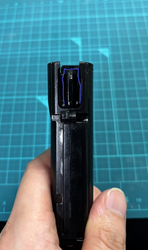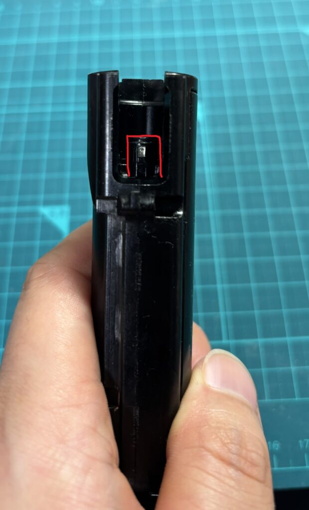 赤丸の位置にノズルを置いてメカボを閉じると、